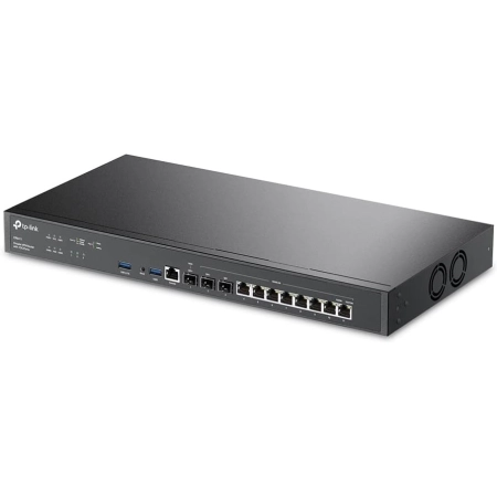 PORT: 1× 10G SFP+ WAN Port, 1× 10G SFP+ WAN/LAN Port,1× Gigabit SFP WAN/LAN Port, 8× Gigabit RJ45 WAN/LAN Ports, 2× USB3.0 port, FEATURE: Integration with Omada SDN Controller, Support SSL VPN, OpenVPN and IPsec/ PPTP/ L2TP/ L2TP over IPSec VPN, 1500000 Concurrent Sessions, Dual Power Supply, Load Balance, Link Backup, 4G LTE Backup with USB Dongle, Policy-based Firewall, Static Routing, Policy Routing, Multi-net DHCP, Guest Portal, VLAN, Support RJ45 SFP+/SFP Module